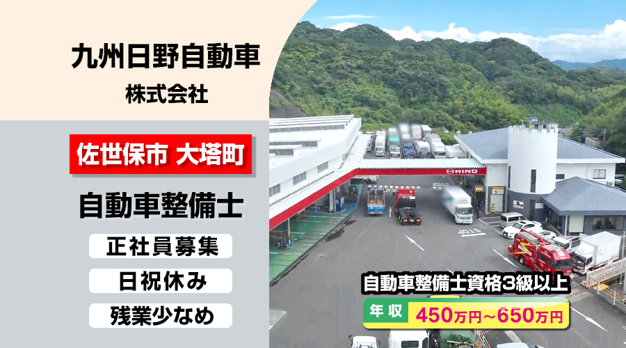 自動車整備士3級以上求人!年収450万以上!長崎県佐世保市大塔町 九州日野自動車株式会社 転職採用情報!